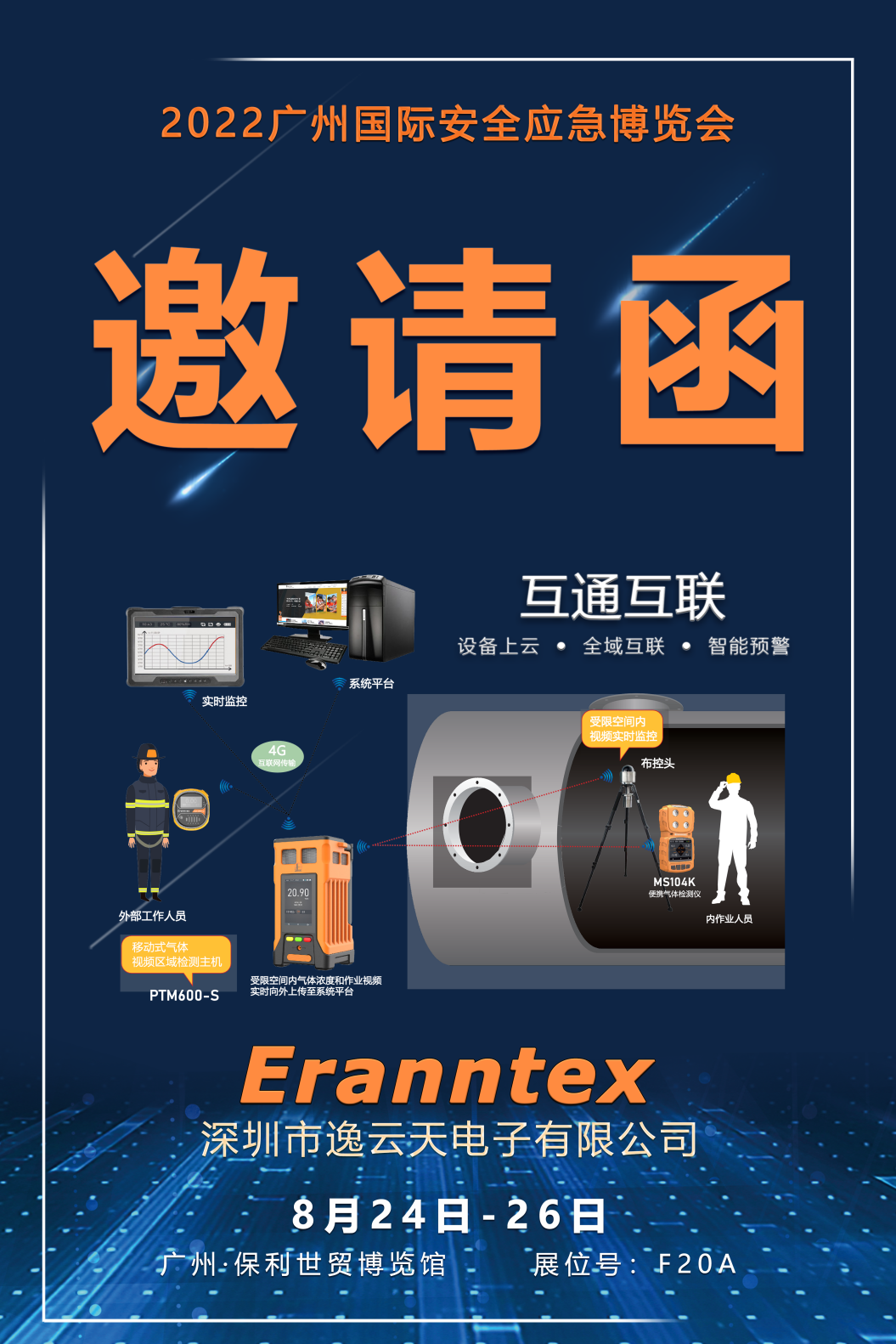 此次展會,逸云天除了為到訪參展觀眾帶來詳盡的技術方案講解之外,還有專業(yè)的氣體檢測儀產(chǎn)品及其他技術成果展出!逸云天展位:F20A,8月24日,與您相聚廣州保利世貿(mào)博覽館,與您不見不散。