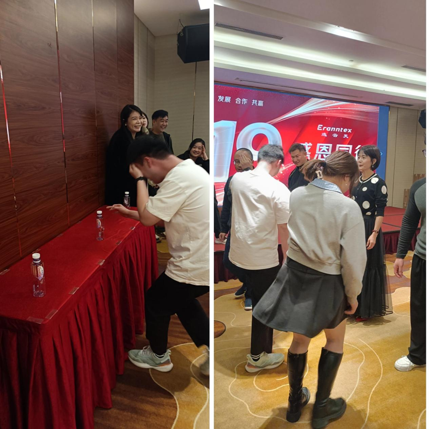 年會(huì)現(xiàn)場(chǎng),趣味橫生的游戲環(huán)節(jié)成為了一大亮點(diǎn)。首當(dāng)其沖的是“錯(cuò)誤乘法表”游戲。14位參賽者排隊(duì)站好,主持人隨機(jī)出九九乘法表題目,答題者必須給出十位數(shù)正確、個(gè)位數(shù)錯(cuò)誤的答案。這一新穎的規(guī)則讓現(xiàn)場(chǎng)笑聲不斷,參賽者們機(jī)智應(yīng)對(duì),展現(xiàn)了逸云天人的聰明才智和團(tuán)隊(duì)協(xié)作能力。