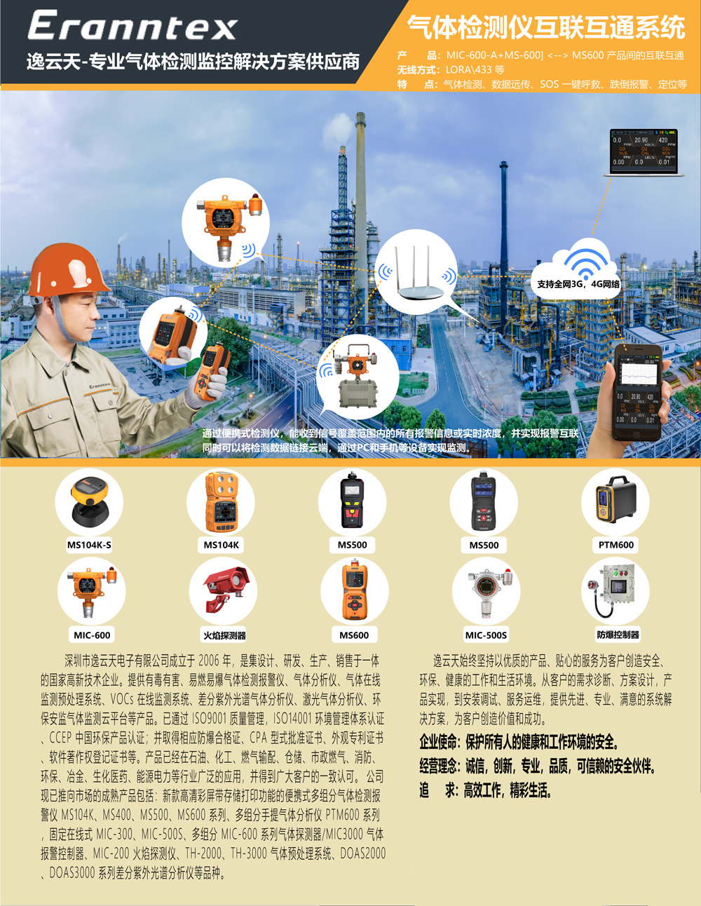 逸云天此次參展產(chǎn)品為氣體檢測儀、無線互聯(lián)互通氣體在線監(jiān)測系統(tǒng),適用于罐體檢修、化工園區(qū)內(nèi)有毒有害氣體及可燃性氣體的泄漏監(jiān)測報(bào)警,同時(shí)可以遠(yuǎn)程查看視頻監(jiān)控及數(shù)據(jù)濃度等。