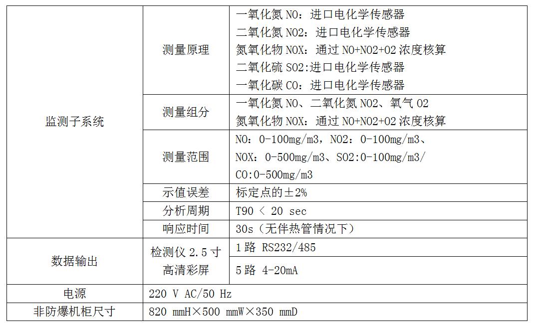 l 監(jiān)測機柜集成了預(yù)處理系統(tǒng)和分析儀并完成測量廢氣含量;