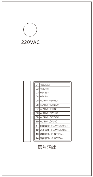 (04)RS485- 通訊接口 | (11)流量信號+ FLOW SIGNAL+ 產(chǎn)量計算流量信號接入 |
