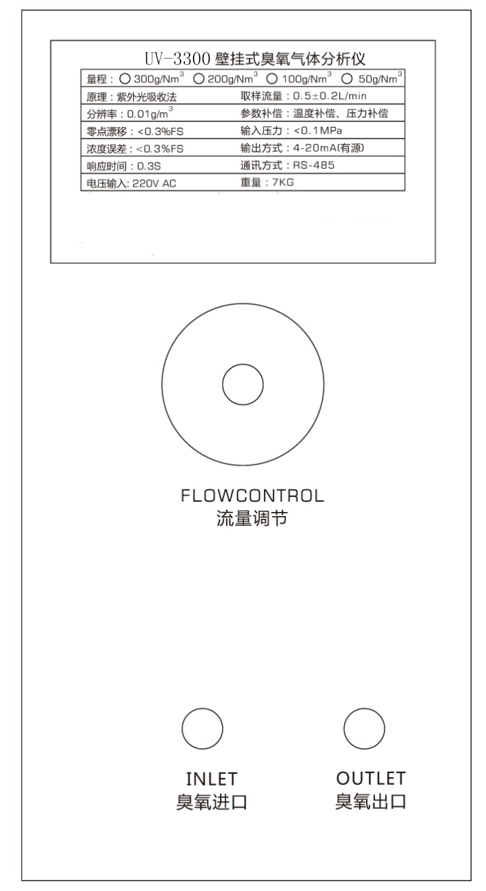 0-300g/Nm3 | 正壓取樣,帶有壓力,溫度補償 | 臭氧發(fā)生器出口濃度實時檢測。 |