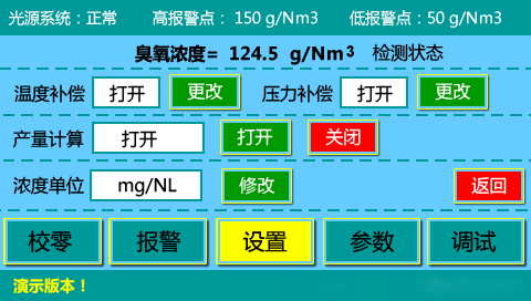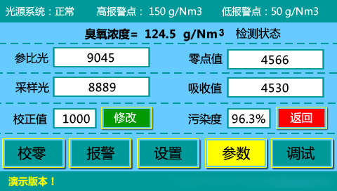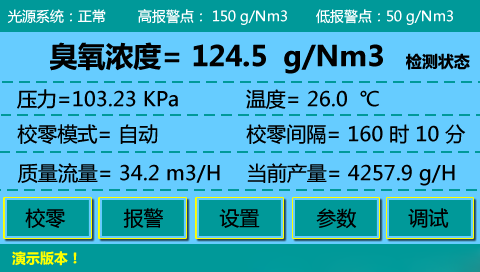 內容界面:臭氧濃度、溫度、壓力;